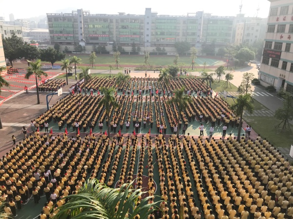 7:50分,伴随着运动员进行曲,全校师生排着整齐的队伍,迈着矫健的步伐从各个教学楼进入操场。大家举着小红旗,精神饱满,满怀喜悦与期待。8:00,在主持人简短而鼓舞人心的开场白后,庄严、肃穆的“礼赞新中国,奋进新时代”主题活动开始了!第一项是升旗,大家凝视着冉冉升起的五星红旗,在雄壮的国歌声中昂首挺胸,高唱国歌,庄重敬礼。