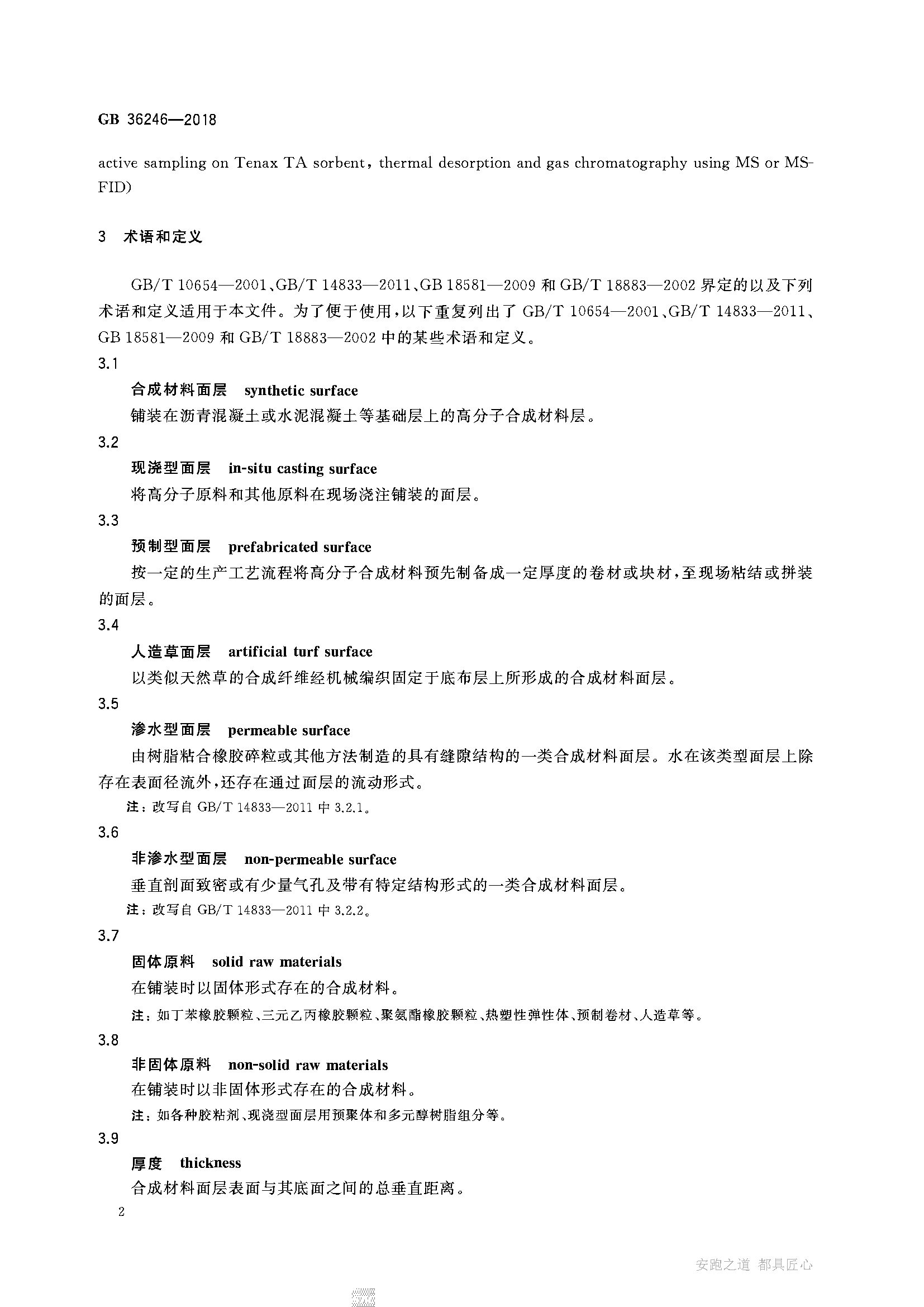 GB 36246-2018 中小学合成材料面层运动场地国家标准