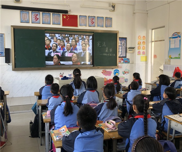 上午九点,凤鸣小学全体教师在各自的工作岗位收看“宪法晨读”网络直播,学习宪法精神,让法治信仰根植于心。各班学生在班主任的带领下,在各班教室内同时开展了学习活动。