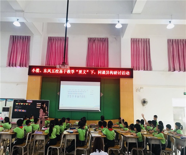 为了促进新教师的课堂教学水平,提高课堂教学实效,2019年4月23日上午,小榄、东凤五校教学联盟活动之新教师汇报课研讨活动在凤鸣小学举行。本次展示活动由黎梅、姚晓燕、王京儒、黄汝颖、袁树干、黄涛、杨小洁、周小红、邓蕾等九位老师分别上了一节汇报课,涉及英语、数学两个学科。