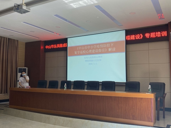 春深四月去,夏来五月新。微风不燥,阳光正好。为充分做好2020年春学期师生疫情下复学返校准备工作,进一步营造校园宽松氛围,帮助师生更好地适应校园生活,5月5日上午,学校要求卫生健康副校长王永东、中山市东凤人民医院心理专家傅晓蓉副主任医师莅临新徽学校为第二、第三批复学的全体教师作《中小学疫情下返校复学心理建设》专题培训。