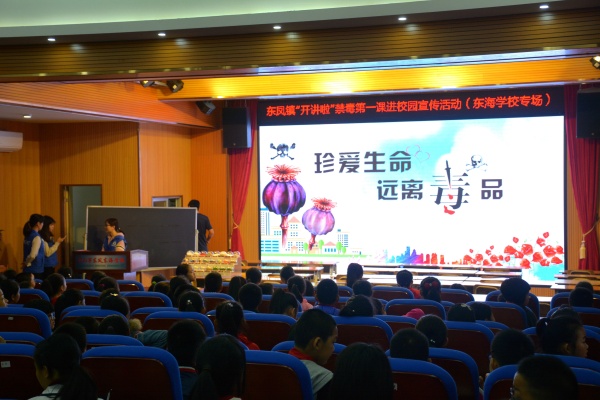 毒品不仅对身心的伤害很大,对社会的危害更大,严重影响人的身心健康。毒品一日不绝,禁毒一日不止。为贯彻落实校园毒品预防教育工作,进一步提高青少年识毒、拒毒、防毒意识,12月19日上午,东凤镇禁毒办来到东海学校,开展“东凤镇‘开讲啦’禁毒第一课进校园宣传活动”。