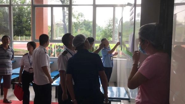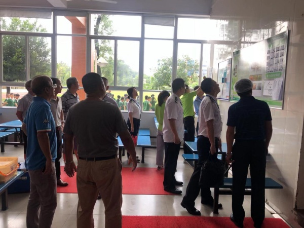 在总务主任张鹏陪同下,检查小组人员首先深入饭堂,检查了食堂的硬件设备,查看了仓库食品的入库与记录,食品留样记录等资料,并详细了解了食堂的责任落实情况,检查了餐饮服务许可证和食堂工作人员的健康证件,询问了日常的食堂监管。