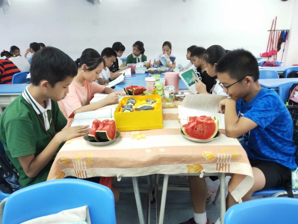 经过一节课的努力,社团老师和同学已经从场地布置,教具学具准备,展示内容等都做好了精心安排。两点五十分,展示活动正式开始。首先是一二楼同学在老师的带领下有序参观三四楼各场室的社团成果展示。接着是三四楼同学在老师带领下有序参观一二楼各场室的社团成果展示。