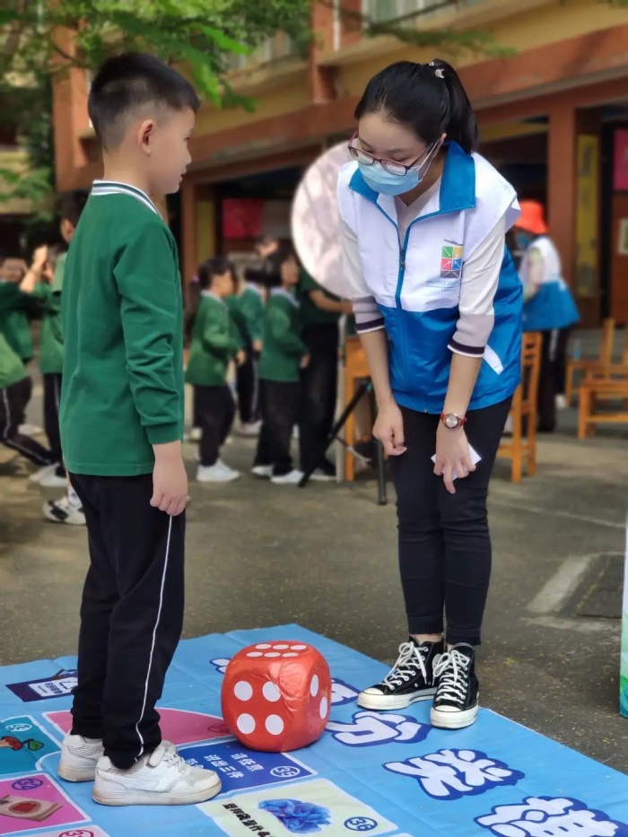 志愿者们以一个个垃圾分类实例作导引,向同学们讲解垃圾分类的相关知识,并分发垃圾分类宣传手册。实践验真知,蕴含垃圾分类知识的趣味游戏将活动推向高潮。现场不仅有益智的“垃圾分类大转盘”“垃圾分类模拟投放”“垃圾分类有奖问答”,还有动脑又动手的“垃圾分类拼图游戏”和“垃圾分类跳飞机”“垃圾分类投篮”,各种趣味小游戏吸引了同学们的热情参与,现场气氛热烈,同学们在游戏互动中不断巩固垃圾分类知识。在“垃圾分类有奖问答”游戏环节,同学们聚精会神,根据志愿者的口令或问题,准确回答垃圾分类的问题,不仅考验了大家对垃圾分类的了解,也锻炼了反应能力,小朋友们玩得不亦乐乎。