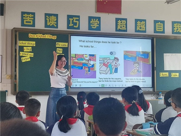 太平小学的薛芳老师为大家呈现的是五年级上的课例《Unit4 Stamp Collecting Club》。本节课是阅读教学,薛老师通读教材,抓住本课Stamp Collecting Club的主题,联系学校社团的实际展开教学。整个过程清晰流畅,环环紧扣,为学生搭建了充足的学习支架,让学生掌握阅读技巧,教学效果良好。第二节课是由北台小学的彭艳云老师执教的五年级上册《Unit4 School Things》一课。本节课是词汇教学,彭老师备课非常充分,教学目标明确,创设了两个新的绘本,为学生创建了新的语境,目的是让学生借助语篇提高小学高年级学生英语词汇语用能力,让学生用英语做事情。这种新颖的教学方法,也是本次课题研究的主要内容。这是一堂高效、有序又不失生动有趣的课,是值得效仿的典范之作。
