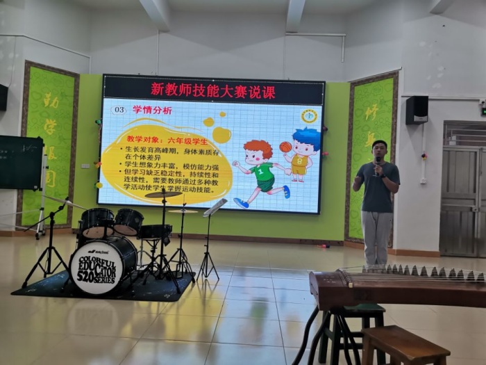 大赛内容包括说课、新课程标准知识测试、才艺展示和粉笔字等几个方面,以此来考察教师教学能力。学校三位青年教师参与了本次大赛。在说课环节,各参赛选手准备充分,教学过程设计合理,语言表达准确生动,教学方法独特新颖。选手们说课自然流畅、端庄大方,富有创意的语言,挥洒自如的仪态彰显出了青年教师扎实的教学基本功以及洋溢着朝气与热情的风采。仇志诚老师的说课内容《蹲踞式起跑》,以活泼轻松又不失严谨的说课风格赢得大家的掌声,接着肖惠支老师的说课《乡下人家》带领大家领略了乡下的自然风光,最后王文暖老师的说课内容为《狐狸分奶酪》,给大家呈现出一节非常精彩的低年级课程。接下来,三位选手分别进行了才艺展示以及粉笔字书写,展示了自己的综合素养。