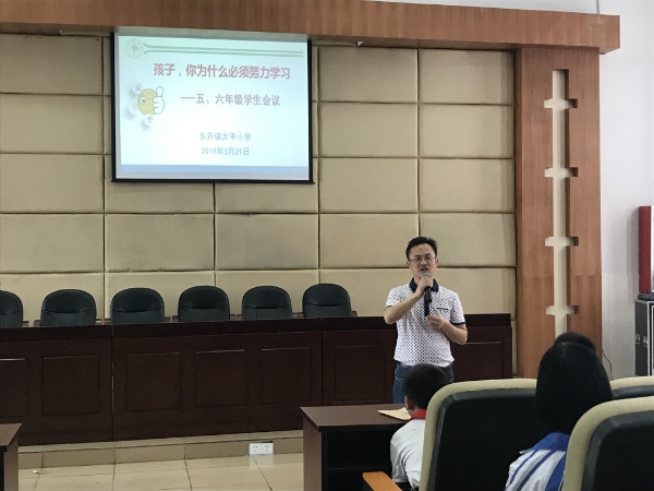 为了迎接2018学年第二学期期末质量统测,提高五、六年级师生对统考的重视程度,根据学校真善美的办学理念,东升镇太平小学于2019年3月21日利用主题班会课的时间召开了五、六年级的学生会议。