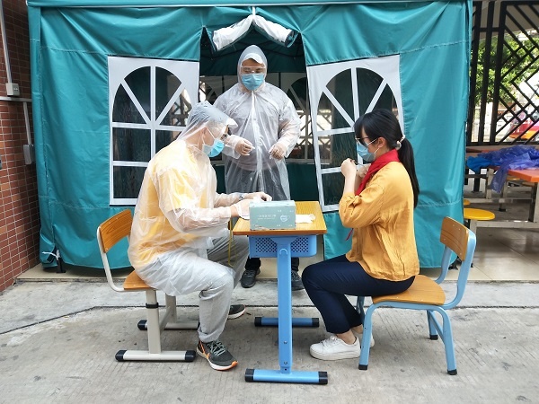 午休时间,老师监督学生戴好口罩在教室进行午休,若期间有学生举手反应不适,老师及时前去进行询问其状况,若是一般因佩戴口罩引起的呼吸不畅,可将其引导到空旷的课室外摘下口罩进行透气和休息,恢复后安静回到座位继续午休。若发生发热状况则按照学校应急预案进行处理。