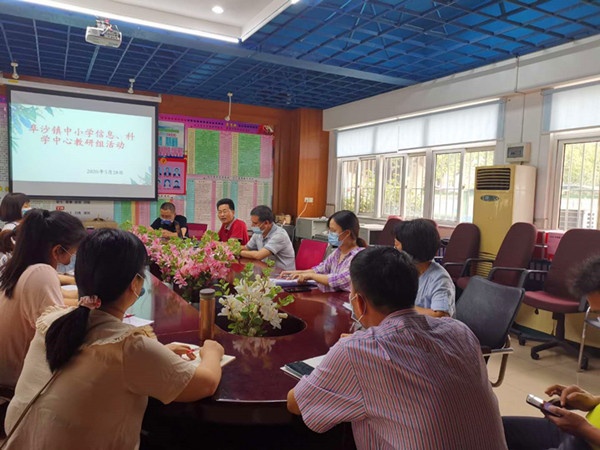 为做好线上线下教学方式的转换,回归正常的教学秩序,充分发挥校际教研交流合作的作用,进一步促进教师专业发展,优化教学方法,培养学生学科素养。阜沙镇中小学信息科学中心教研组于2020年5月29日上午在阜沙中心小学荣誉室,开展了关于“线上线下教学研讨,本学期本校教学计划”主题的研讨会。