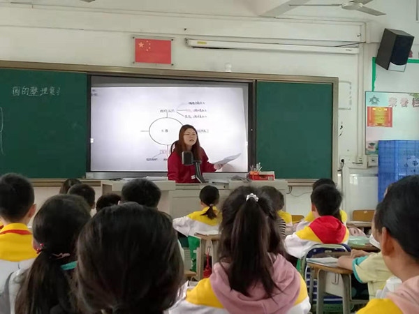 第二个环节,由主讲老师说课。王老师根据教学目标把整节课的教学思路和设计展示出来,与参听老师一起分享。在如何上“圆的整理复习”这样的课,王老师根据教材特点和学生的情况也说出自己的方法和观点,对教本和学生进行了深入地备课。