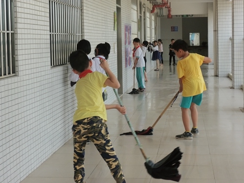清洁活动安排在下午第三节进行。各班根据学校安排,结合班级情况,做好具体分工,对包干地段、公共场室来了一次彻底的清洁。只见同学们在班级老师的带领下,除蛛网、擦窗户、抹枱凳、拔杂草、拾垃圾、拖地板……整个校园一下子像炸开了锅。虽然老师不能照看每一个地方,但同学们自觉地,有组织地开展劳动,每个角落都能看到同学们一丝不苟,认真干活的样子。低年级同学干不了的活,高年级的同学争着干;危险的活,老师、家长顶着干;太重太累的活,男同学抢着干;热火朝天、互帮互助的劳动场面让人感动不已!一节课下来,整个校园焕然一新。呼吸着新鲜的空气,看着洁亮的环境,同学们为自己的劳动成果感到欣慰!