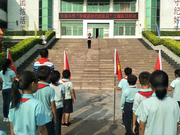 为庆祝中华人民共和国成立70周年,纪念少先队建队70周年,喜迎少先队广东省第七次代表大会的召开,2019年10月12日上午,牛角小学少先队组织开展“争做新时代好队员”主题队日活动,本次活动由大队辅导员王娟娟老师主持。