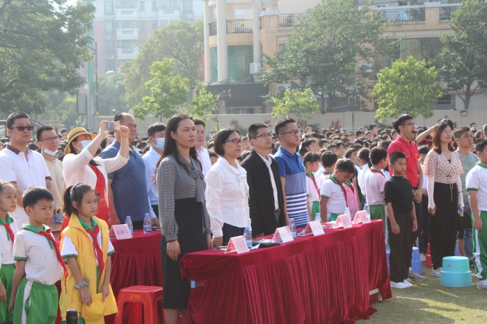 雄壮的进行曲奏响,运动会开幕式开始了。港口镇党委委员罗希京、港口镇教体文旅局局长冼伟明、港口镇教育和体育事务中心主任刘宪君和副主任张育文、港口社区居委会副书记苏林坤、胜隆社区居委会治保会主任梁镇中以及各年级家委会会长出席了本次运动会开幕式。旗面迎风招展,国旗、校旗、彩旗率先入场。尔后,各个年级的特色方阵有序进场。各个年级的方阵队伍用舞蹈、武术操、情景剧等方式向大家分别展现了白衣天使、军人战士、公安干警、党员群众等奋战在疫情一线的情景,向那些坚守在岗位,抗战在一线的逆行者们致敬!