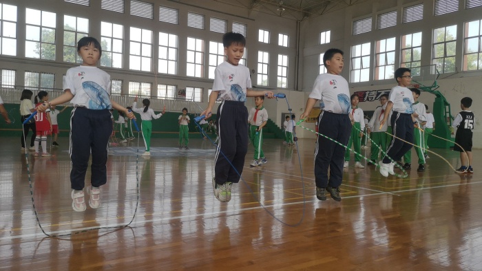 开幕式结束之后,投掷小布球、跳高、班级拔河比赛、障碍跨越、绳类项目等各项运动竞技开展得如火如荼。运动员拼搏的身影形成了一道道亮丽的风景线。运动员们在赛场上挥汗如雨,奋勇向前,向着更快、更高、更强全力一搏。