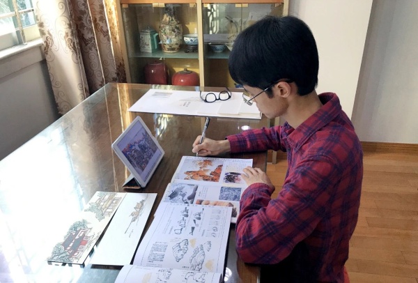 此外,在连续四周的美术线上教学中,郭老师还推出了《春晓诗意图》《只在此山中》等儿童山水画题材美术课程,均取源于小学经典的唐诗。系列的特色国画课受到了广大学生和家长的积极参与,诞生了一批特色鲜明、文艺而童真的山水画作品。