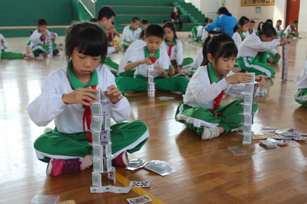 针对学生的年龄特点,比赛分低、中、高三个学段来进行。其中,一二年级举行的活动是手掷纸飞机,飞向科技的殿堂。孩子们带来了亲手设计的纸飞机,他们那信心十足的神情,跃跃欲试的姿态,让比赛现场变得欢快起来。在裁判的组织下,孩子们用有力的臂膀放飞手中的纸飞机,放飞他们美好的飞天梦。三四年级开展了纸牌搭高活动,裁判一声令下,场上马上沸腾了起来。孩子们通过巧手搭起奇妙的高塔,感受科技的魅力。五六年级举行了“鸡蛋撞地球”的比赛,当参赛者们的作品一个一个丢下来的时候,所有同学们的心都被牵动着,同学们有时因为“鸡蛋”安全着陆而欢呼鼓掌,有时因为作品的奇葩思路而开怀大笑,有时因为鸡蛋碎裂而叹息。这一挑战不但给同学们提供展示风采的舞台,还带来了无限欢乐。