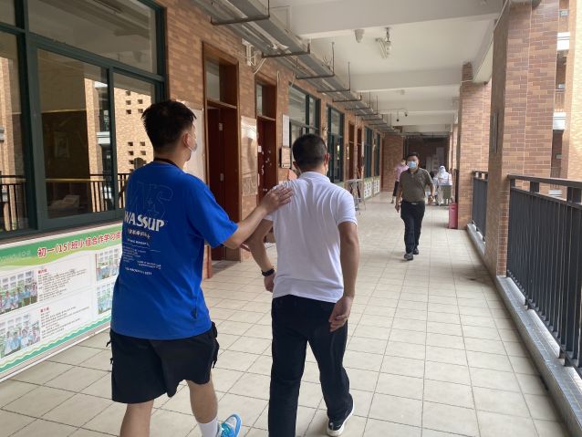 任课教师及时带领余下学生有秩序离开课室,到备用点等候,后勤安排人员对原教室进行开窗通风和全面消毒。
