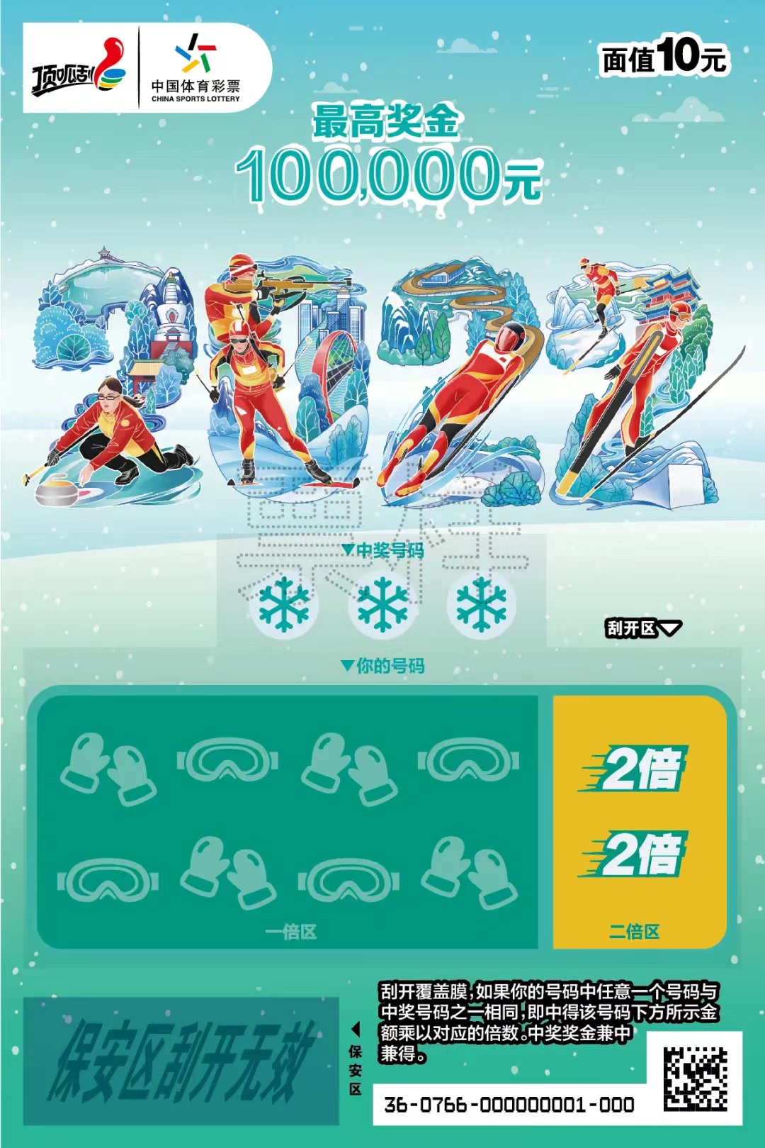 此前星空体育已经介绍过体彩虎年生肖票了,而2022北京冬奥会是中国体育的第一盛宴,“2022”主题票面通过数字2022展现出中国体育健儿在冰雪运动中英姿飒爽,也号召大家喜迎北京冬奥、为中国体育加油。“2022”面值10元,游戏玩法为数字匹配,共有10次中奖机会,最高奖金10万元。