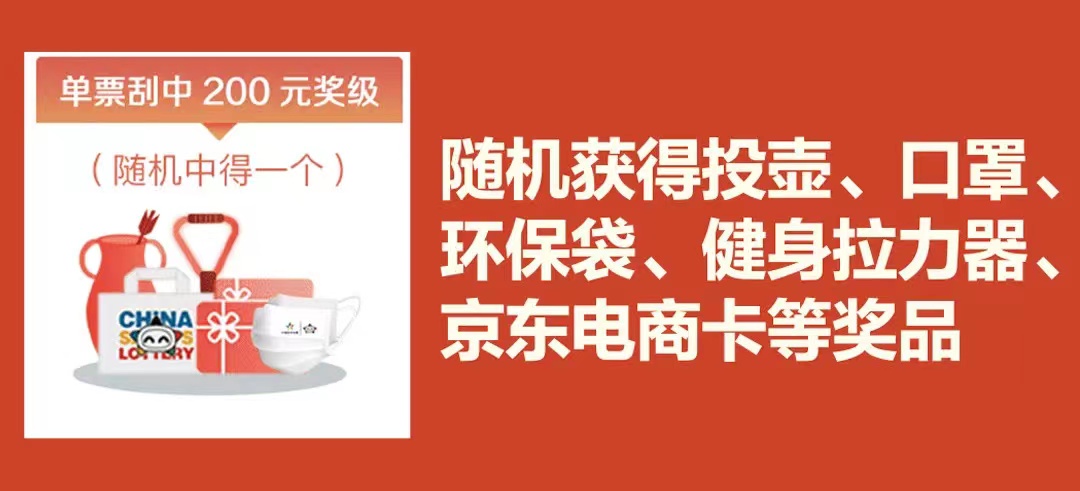 活动期间,凡是购买“寅虎”、“锦虎贺岁”、“2022”、“虎虎生威”4款即开票中任意1款,单票刮中1000元奖级,在完成奖金兑付后,通过“中国体育彩票”APP或微信小程序,扫描保安区二维码登录活动页面,即可获得健身滑板。单票刮中200元奖级,在完成奖金兑付后,通过“中国体育彩票”APP或微信小程序,扫描保安区二维码登录活动页面,即可随机领取投壶、口罩、环保袋、健身拉力器、电商卡等奖品,奖品数量有限,领完即止。