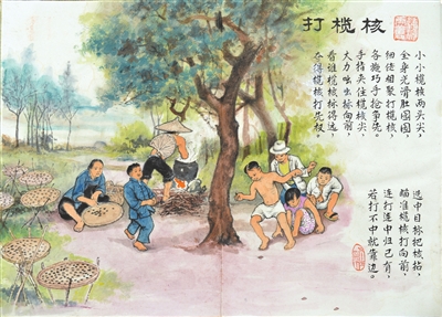 邓振铃作品《儿童游戏》系列之《打榄核》。
