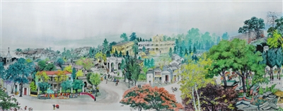 邓振铃作品《故园忆旧图》局部,中山县立中学原址,现在的中山开放大学。