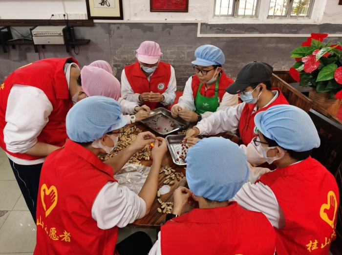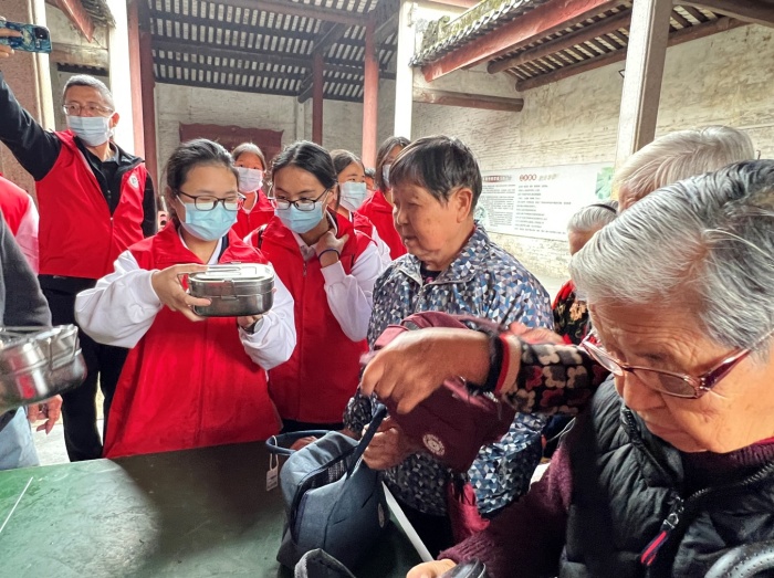 为传承敬老爱老、服务社会的美德,2023年4月1日早晨,桂山中学高一年级学生、家长身穿志愿服,冒着朦胧细雨,早早来到了三乡公益食堂开展“服务老人,帮助厨师”的热心公益活动。当天,三乡公益食堂还举行了桂山中学志愿服务实践基地授牌仪式。