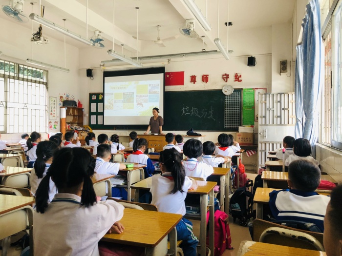 活动中,各班通过一个个震撼人心的视频让学生对日趋恶劣的环境形势有了更清晰的了解,从而深刻地认识到环保的重要性、紧迫性;同时结合具体事例向学生讲解生活中垃圾分类的标准、可回收垃圾的利用价值、有毒垃圾的危害、实行垃圾分类的重要意义等内容,号召学生从自身做起,学习并宣传分类投放垃圾,为资源循环利用贡献自己一份力量。