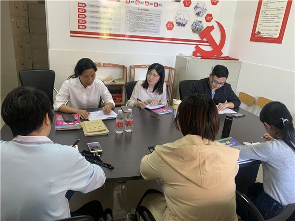 接着,英语科组长苏丽梅老师解读了学校工作计划和本学期英语组的教研活动计划,对本学期英语组的教学教研工作做了详细的安排和部署,带领大家认真的总结和反思了这几周以来的工作,指出了英语组的优势和存在的不足之处,老师们也从自身角度出发,认真反思了自己在教育教学中遇到的问题,互相交流了经验。组内形成了重研讨、重实践、重反思的教研氛围。最后,特别指导了新老师的导学稿设计。