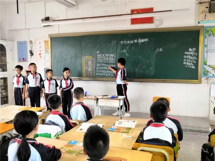 本节课采用小组合作探究的形式进行教学,以学生为主体,通过学生所学的数学知识,启迪和发展学生思维。在教学一开始,陈老师以羊村分草地的情境导入,激发学生学习的兴趣,引发了学生思考。紧接着,陈老师抛出了本节课学习的关键问题如何求平行四边形的面积,学生分区、分小组进行合作学习。学生便展开激烈而紧张的讨论。随后,陈老师根据不同的问题,分别选取了三个小组进行汇报。整个汇报的过程中,展示学生表达清晰,分工明确,其他学生认真倾听,及时进行质疑和补充,老师介入时机的把握恰到好处,根据学生的汇报情况及时补充与小结。在陈老师的引导下,学生探究出了平行四边形的面积公式。整堂课,学生学习积极性高,课堂气氛活跃,师生互动,生生互动,使数学课堂充满了生机与活力。陈老师的教态自然,课堂巧妙运用恰当,体现了扎实的教学基本功。
