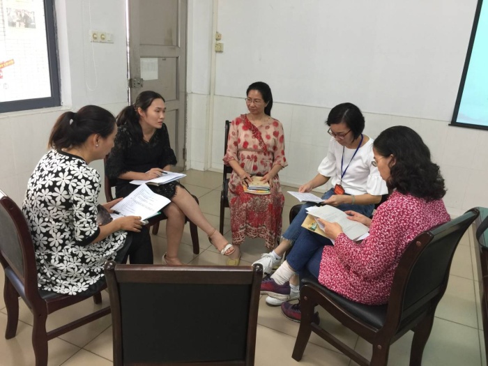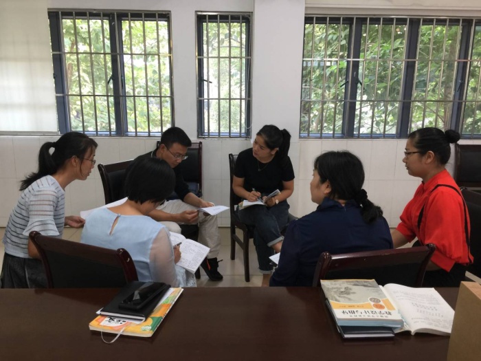 第二节课,全体语文教师集中教研室,继续开展教研活动。在吴晓华老师的带领下,全体语文教师诵读和吟咏了诗歌《大风歌》。林颖欣老师和占有武老师对上周外出学习的收获进行了交流和分享。林颖欣老师以《我的心砰砰跳》、《我来编童话》等课例为例,提出“写作教学生活化”“关注写作过程的指导”“教会学生点评”三个观点,让教师们再次明确了写作教学的重难点,疏通了写作教学的思路。占有武老师则结合相关课例,分享口语交际教学要注意“立足教材,不拘泥教材”“情景的创设,突破难点”“言语导向生活实践”“书面语辅助口语交际”等几方面的内容。