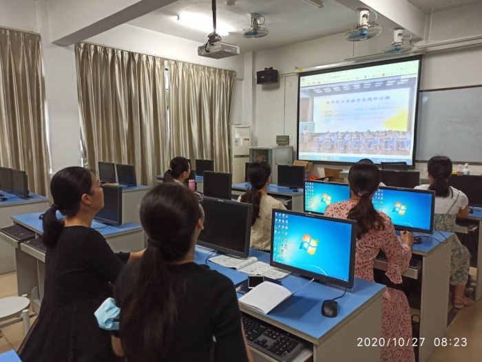 在27日上午,低年级的语文教师集中学校电脑室,通过线上学习的方式参与了梁雪菊名师工作室举办的“关注字源字理,传承汉字文化”会课研讨活动。活动分为三个环节进行。在活动的第一个环节,东升镇的蒋阳晔老师、三乡镇的宁萍老师以及中山市实验小学的杨笑老师分别为大家带来了课例《秋天》、《难忘的泼水节》及《敕勒歌》。接着,在主持人袁小翠老师的带领下,研讨沙龙热烈展开。老师们首先对三位教师的课堂表示了肯定,认为三位教师都能灵活地在课堂中渗透字源字理的知识,在激发学生生字识记兴趣的同时,潜移默化地让学生感受到中国博大精深的汉字文化,识字教学的内涵变得更加丰盈,课堂变得更加韵味十足,引人入胜。但教师们也提出,对于低年段的学生,阅读课还要特别重视学生的朗读训练,要引导学生在读中感悟,在读中理解。