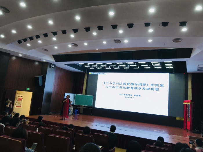 打印 |为加强中山市书法精品课程研用结合,推动中小学书法教学与小学语文书写教学课堂融合实践,突破跨学科教改难点,提高中山市中小学生书写和书法水平,探索基于书法教育工作坊与中小学书法、小学语文写字教研的新路径,11月5日上午,中山市教育教学研究室特举办2020年中山市小学书法、语文课堂教学融合研讨活动暨首届中山市教师书法教育工作坊揭牌仪式。镇南小学的郭淑玲老师参加了此次活动。