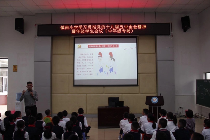 打印 |为了促进学生的全面发展,提升学生的品行素养,端正行为习惯,调动学习积极性,12月28日下午,镇南小学组织学生参加贯彻党的十九届五中全会精神暨年级学生会议(中年级专场),中年级全体学生和班主任、科任老师都积极参与。会议分为两个环节: