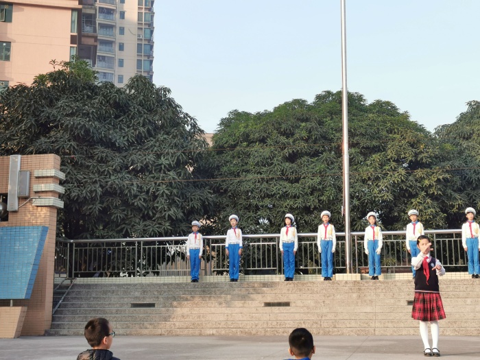 在升旗仪式结束后,五(3)班中队代表区梓慧同学自信、阳光地走上升旗台。她把地球比喻成妈妈,生动形象地说明地球妈妈越来越不堪重负,人类产生的垃圾太多了,地球“妈妈”开始抱怨了。引用相关报道,科学预测:再过几年,地球产生的垃圾将无处填埋,将出现“垃圾围城”的危机。同学们更加意识到垃圾危害的严重性。