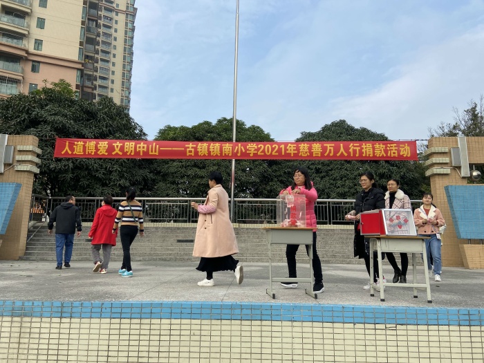 打印 |为发扬慈善博爱的传统,弘扬无私奉献的精神,促进社会各项事业的进步,建设幸福和美的中国灯饰之都。中山市古镇镇红十字会、古镇慈善会向全镇人民发出主题为“人道博爱,文明中山——为新古镇人民医院建设添砖加瓦”的公益筹款活动倡议,镇南小学积极响应号召,于12月24日进行了慈善万人行捐款活动。