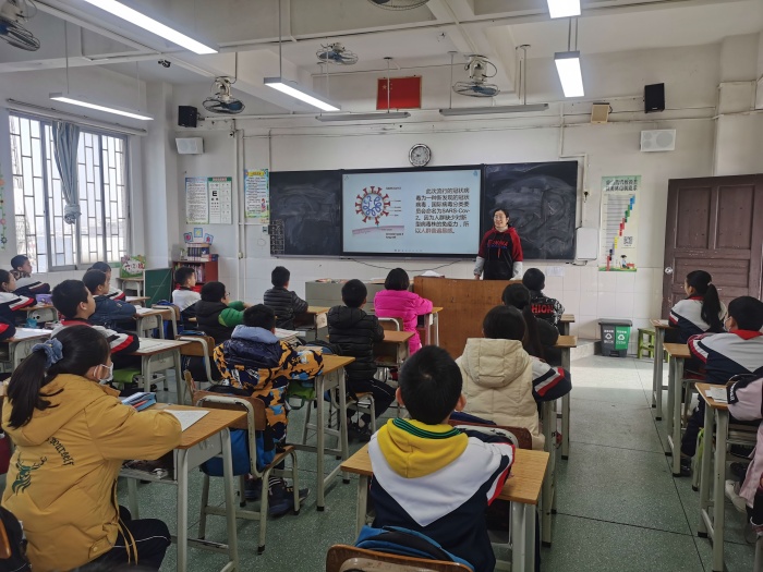 活动中,班主任们从病毒传播途径、感染病毒症状、如何做好个人防护等方面进行讲解。在指导个人防护措施时,班主任们还不时邀请同学们当“小老师”,为大家示范“七步洗手法”,纠正大家佩戴口罩时的常见错误。在主题班会上,同学们还一起观看了疫情相关视频,感受疫情故事,随后由各班派学生代表主讲,小组讨论发言,最后由班主任进行总结。辅导员老师积极引导同学们向勇敢的“逆行者”学习,长大后成为心有大爱,有责任担当的人!