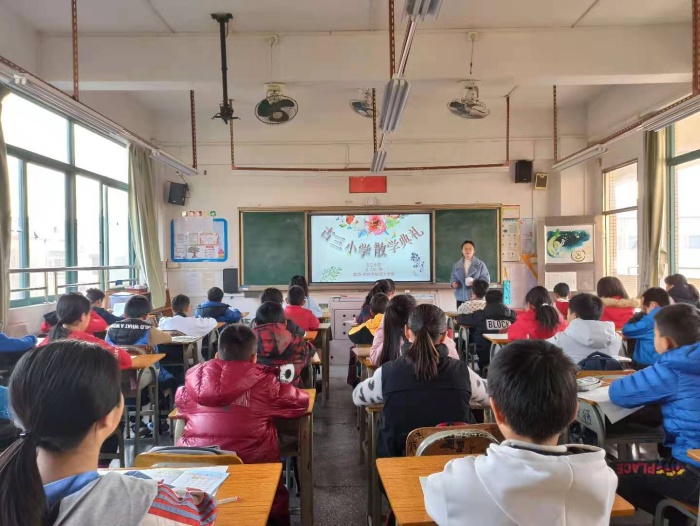 由于疫情期间避免群体聚集,本次的散学礼情况特殊,没有像往常一样全体学生集中在小广场,而是学生都安静地坐在教室里,在广播声中开始散学礼。首先由驻村民警曾文学警官给同学们做安全讲座,交通安全、消防安全、人身安全、饮食卫生等方面进行教育,并用生动具体的事例警示、告诫、教育学生,要求大家在假期里能谨记安全,注意文明,劳逸结合,度过一个和谐、安全,充实的假期。