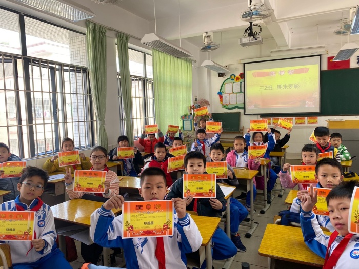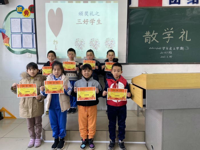 接下来,在同学们的欢呼声中,各班班主任回顾总结了本学期同学们的生活和学习,并为班级获奖学生进行了表彰和颁发奖状。伴随着阵阵热烈的掌声,获奖的学生一一走上讲台,接过了一张张包含收获喜悦的奖状,相信这些学生在教师的期待和同学们的祝福下,新学期定能百尺竿头,更进一步。