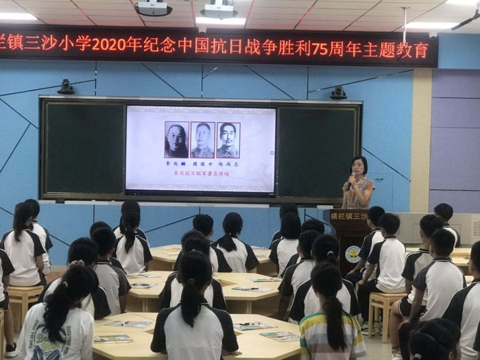 为纪念中国人民抗日战争胜利暨世界反法西斯战争胜利75周年,让学生了解抗日历史,教育学生勿忘国耻,珍爱和平,努力学习,长大后把祖国建设得更加强大,横栏镇三沙小学于2020年9月3日开展了以“勿忘国耻,少年当自强”为主题的“校长上好思政第一课”学习活动。