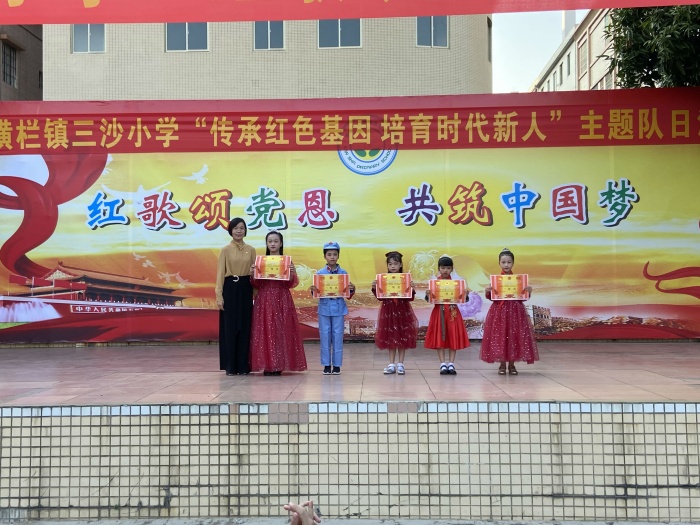 最后,三沙小学德育副主任黄丽萍、少先队辅导员王巧玲和冯红燕校长分别给获得三等奖、二等奖和一等奖的选手们颁发了奖状。低年级组一(1)班吴梓恩、二(2)班黄巧蓝,中年级组三(3)班麦钰仪、四(4)班梁旖淇,高年级组六(1)班吴梓晴分别荣获一等奖。