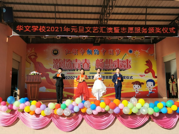 时光流淌辞旧岁,万象更新贺新年。为丰富学校文化生活,给华文学子搭建一个培养能力、展示才华的舞台,激发学生热爱生活、热爱学习、热爱校园的情感,提高学生的全面素质,华文学校于12月31日上午举行2021年元旦文艺汇演暨志愿服务颁奖仪式。
