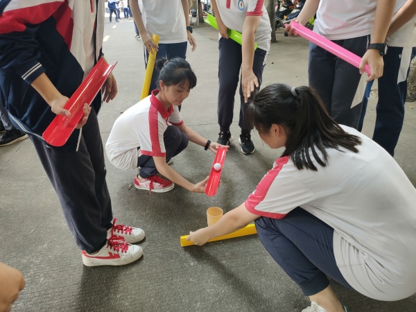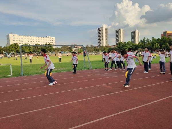 首先,初三年级的学生们在班主任的带领下,怀揣期待与热情,从教室下到操场,在跟班老师和班干部的协助下,以班级为单位分四组开展“珠行万里”、“夹板接力赛”活动项目。活动由此拉开了序幕,妙趣横生的比赛环节营造了轻松愉快的氛围,也让学生们缓解紧张情绪,尽情地投入到活动中来。
