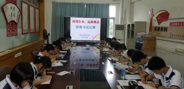 为了加强禁毒宣传教育,使广大学生认清毒品的危害,提高学生识毒、防毒、拒毒意识,自觉抵制毒品侵害;同时为了丰富校园生活,营造浓厚的校园文化氛围,展现中国文化的博大精深。在第33个国际禁毒日来临之际,6月5日下午,南头镇初级中学开展了一次以“珍爱生命 远离毒品”为主题的禁毒书法比赛,初一级同学参与此次活动。