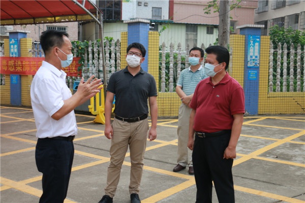 2020年5月25日下午,南头镇复学专班验收组到升辉小学督导第四批1-3年级返校复学开学工作情况。专班组成员南头镇张均标副镇长、肖彦余副镇长、卫计局梁联胜局长、文体教育局吴永高局长、党政办副主任梁晓宇参加了此次督导的。