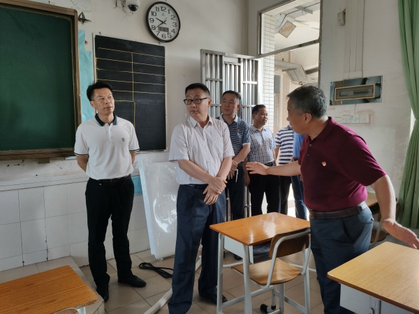 听取卢校长的汇报后,徐宁军书记一行实地察看学校监控室、考试室等场所,重点对考场空调安装进程及安全、中考期间防暑降温措施、学生近期学习状态等方面进行详细了解。其次,徐书记对南头镇初级中学的中考准备工作给予充分肯定,对南中的中考寄予厚望。最后,徐书记强调,学校要督促工作人员尽快完成中考考场空调安装工作,竭尽全力为考生提供良好、舒适的环境,充分体现学校的人文关怀;此外,学校对中考考务工作一定要进行充分部署与周密安排,确保中考安全顺利进行。