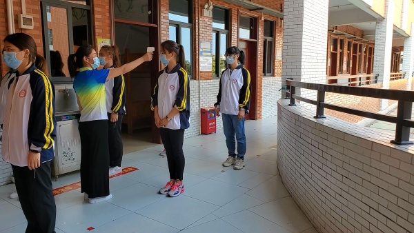 演练中,在疫情防控领导小组及工作人员协同合作下,开展了学生到校晨检演练、上课期间发现发热学生、进入隔离室等实际情境模拟演练活动。