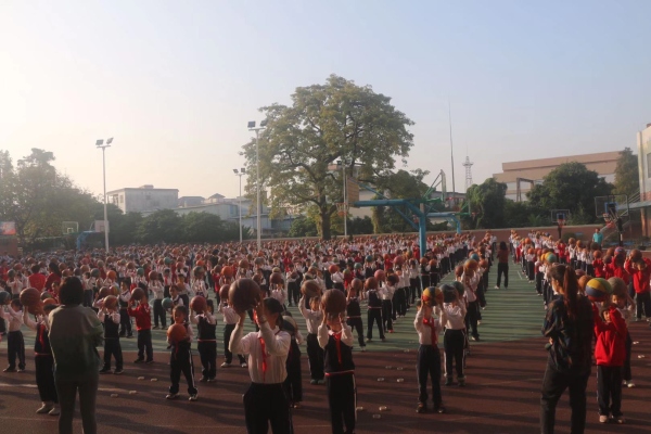 紧接着,第一节课是由王佛根老师带领对甫小学六(4)班的孩子们开展篮球主题的体育课。在干净的操场上,一排排整齐的队伍,一张张灿烂的笑脸,都显示着对甫小学学生健康、活泼、积极、向上的精神面貌。