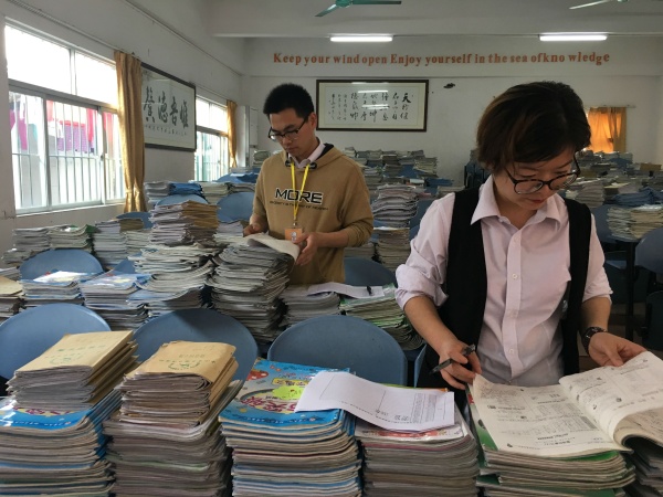 教学常规是对学校教学工作的基本要求,教师批改作业则是教学常规的重要环节。教育的成功体现在日常教学工作的每一个细节之处,只有搞好教学常规才能有成功的教育。为了切实提高教育教学质量,督促教师认真做好各项教育教学工作,不断提高教师的教学业务水平,3月20日至21日 ,黄圃华洋学校进行为期两天的教育教学常规工作检查。本次活动在校长室指导下,由分管教学的聂长虹副校长带领教导处及科组长组成检查小组,对全校教师常规业务进行检查。