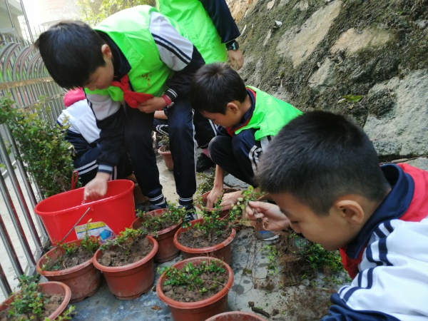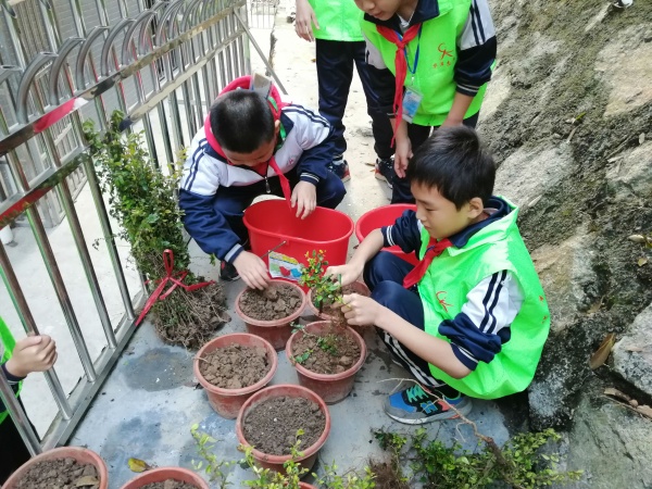 春回大地,万物复苏,正是一年好春景,在植树节来临之际,为了增强广大师生“栽花植树,爱护环境”的责任心,为使同学们更加关注绿色、关注环保,唤起同学们植树造林、绿化环境、美化生活的共同意识。2019年3月12日,黄圃华洋学校德育处组织师生开展了栽花植树活动。